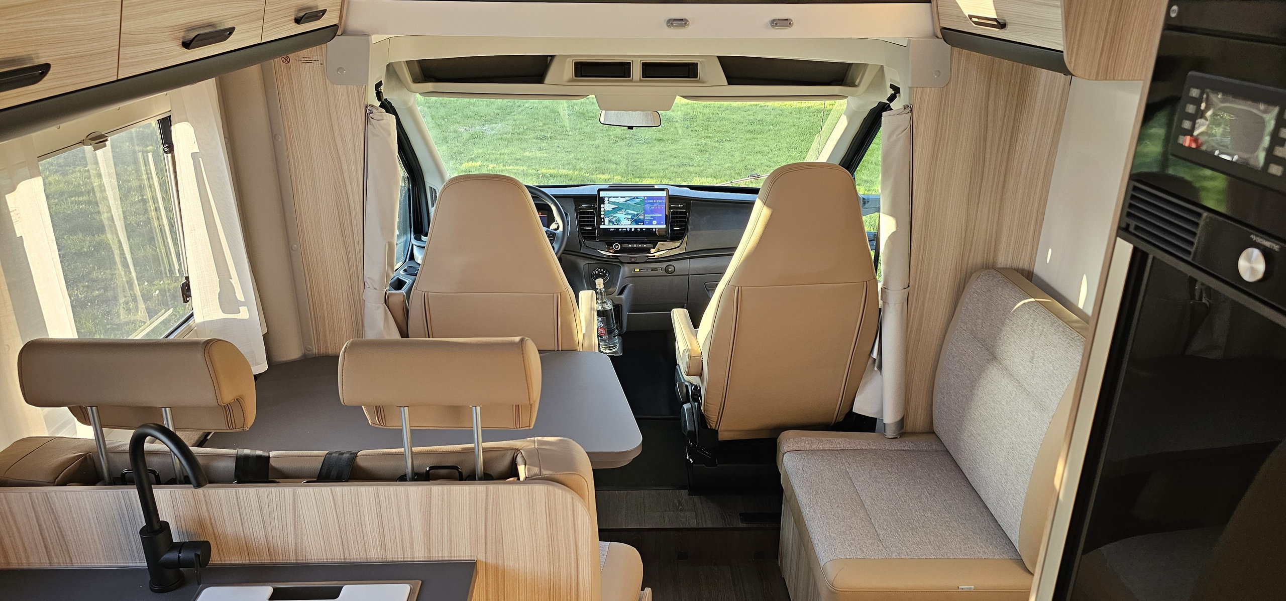 Kényelmes tér, praktikus kialakítás és igazi szabadság az utazásban. Csak beültök és már kezdődhet is a kaland. Extrák: Andriod Auto és Apple CarPlay komatibilis vezetés támogató rendszer, Ford Multimédia, automata motorklíma, tempomat, tolató kamera, LED belső világítás, sötétítő függöny és szúnyogháló az ablakokon, sötétítő roló a szélvédőn, panoráma tetőablak, szúnyogháló a bejárati ajtón, Camper Premium pack, WC szellőztető, szigetelt, fűtött szennyvíztartály, elektromos szennyvíz leeresztő, digitális kontroll panel a fűtéshez, 220 voltról működtethető tetőklíma, széf, napelem, kiegészítő légrúgó, külső gázcsatlakozó, külső zuhanycsatlakozó, gáztartály külső betöltővel, 4,5 méteres, led lámpával szerelt omnistor, előtető, kerékpártároló a hátfalon 4 kerékpár részére.